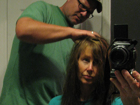 Dan “styling” my hair after the mastectomy surgery