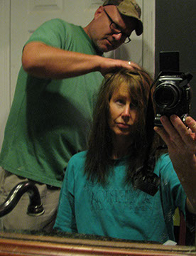 Dan “styling” my hair after the mastectomy surgery